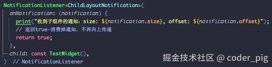 ③ 接收通知的父Widget套一个 NotificationListener 来监听指定类型的通知: