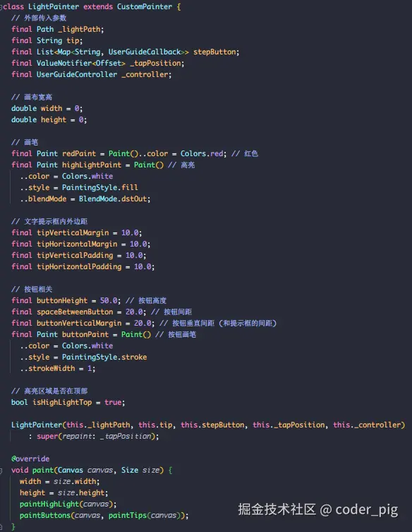 🤡 本节,杰哥带着大伙手把手实现了「用户操作引导组件」的 简易封装,总体来说还是 非常简单 的。核心的技术难点无非「特定组件的高亮」,通过「混合模式-BlendMode」就能实现这样的效果,剩下就是一些自定义绘制的计算。例子里是 CustomPainter 一把梭,更贴合日常开发的通用套路: