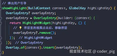 😄 个人建议:对于需要 一直处于页面最上层 的弹窗才用 Overlay,其它情况都用 Route。而在这里,用户引导操作页位于顶层没毛病,所以这里直接用 Overlay 来弹窗 😆。
