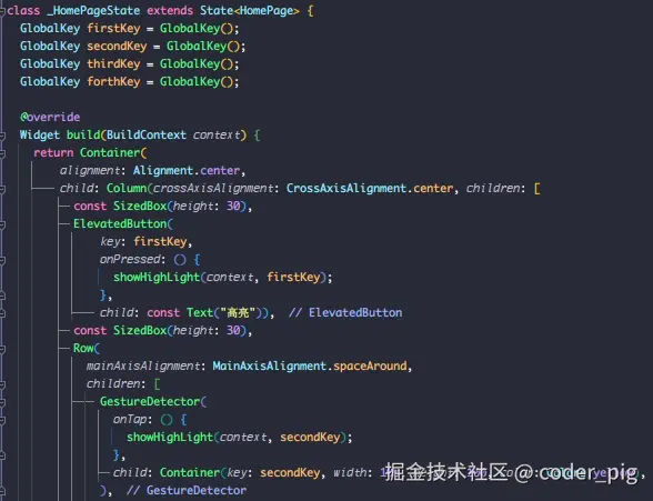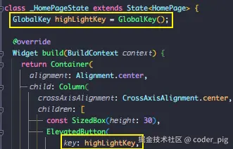 最后加上 GlobalKey 并传递给 需要高亮的Widget:
