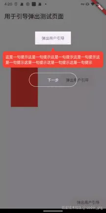 😄 如果你这里不用 saveLayer() 你会发现不是高亮反而是 变黑,接着加一个弹窗方法,其中传递一个 移除浮层的回调,以便点击时关闭引导: