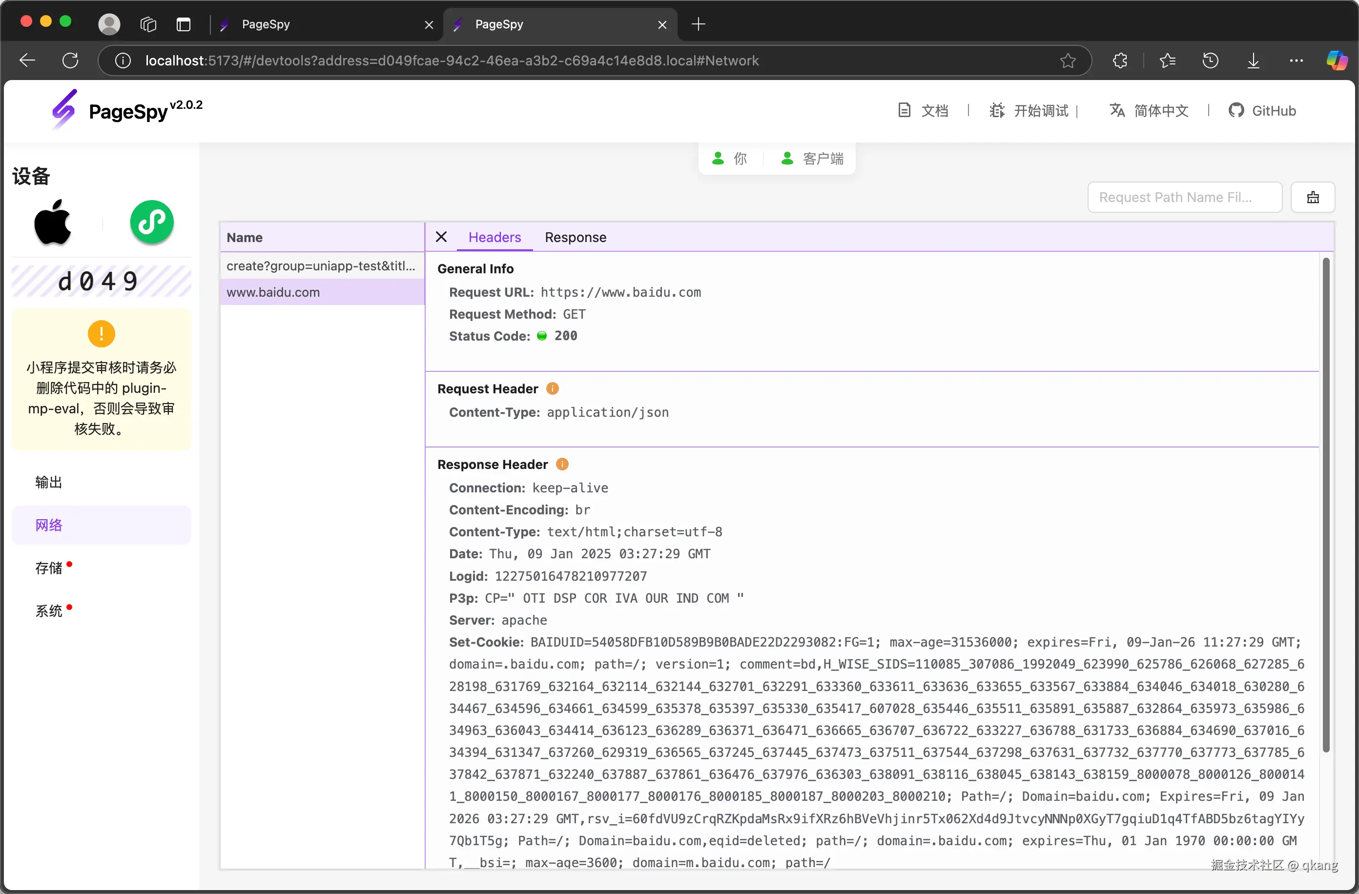 来看 PageSpy 的网络面板: