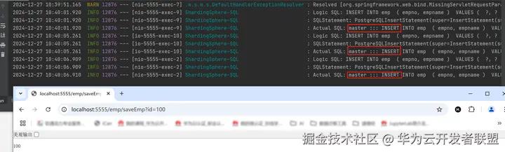 执行一个只有写入的业务,在日志中可以看到该语句在xxx.11(主节点)这个读写节点上执行并成功插入,实现了写分离。