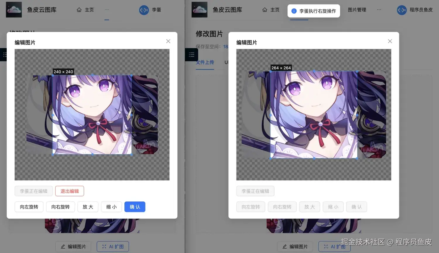 10)给团队空间上传一张图片,然后让 2 名成员同时进入编辑: