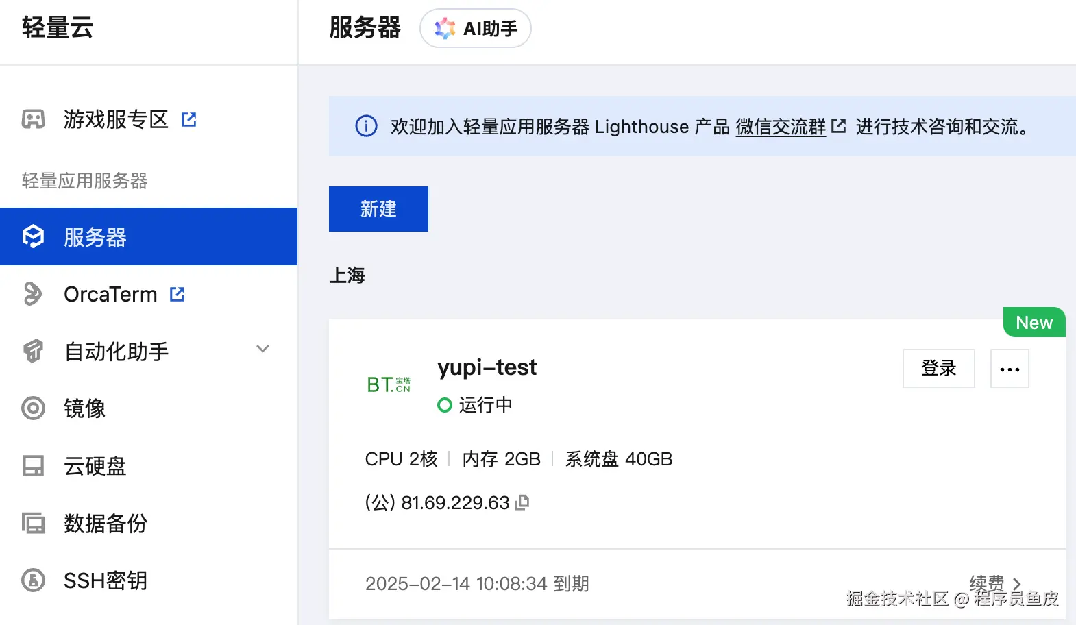 购买好服务器后,进入控制台,可以看到新增的服务器信息,注意不要主动对外暴露公网 IP!