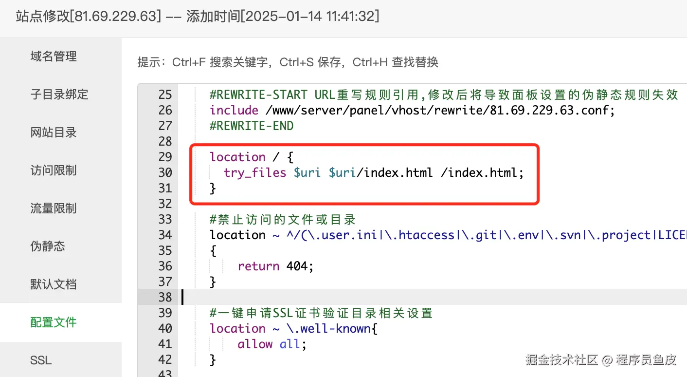 这个问题是由于 Vue 是单页面应用(前端路由),打包后的文件只有 index.html,服务器上不存在对应的页面文件(比如 /add_picture.html),所以需要在 Nginx 配置转发。如果找不到某个页面文件,就加载主页 index.html 文件。