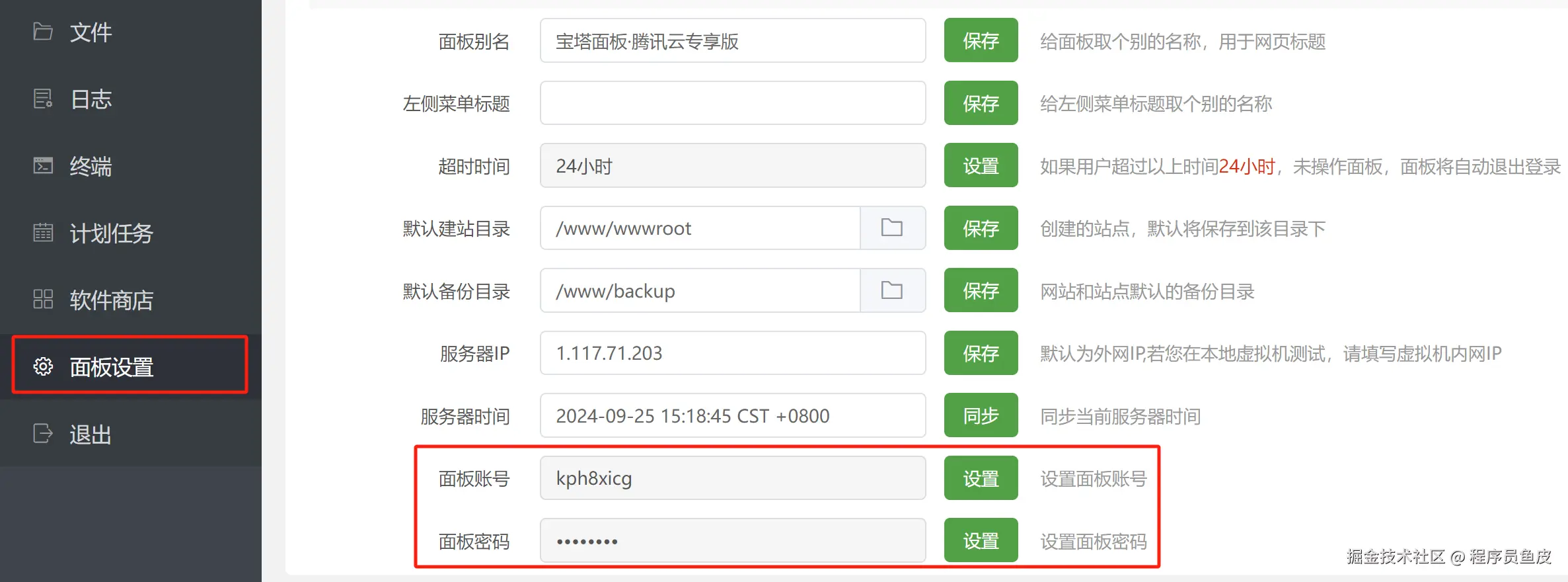 首次进入宝塔面板时,记得修改面板账号密码(每次修改完都要重新登录):