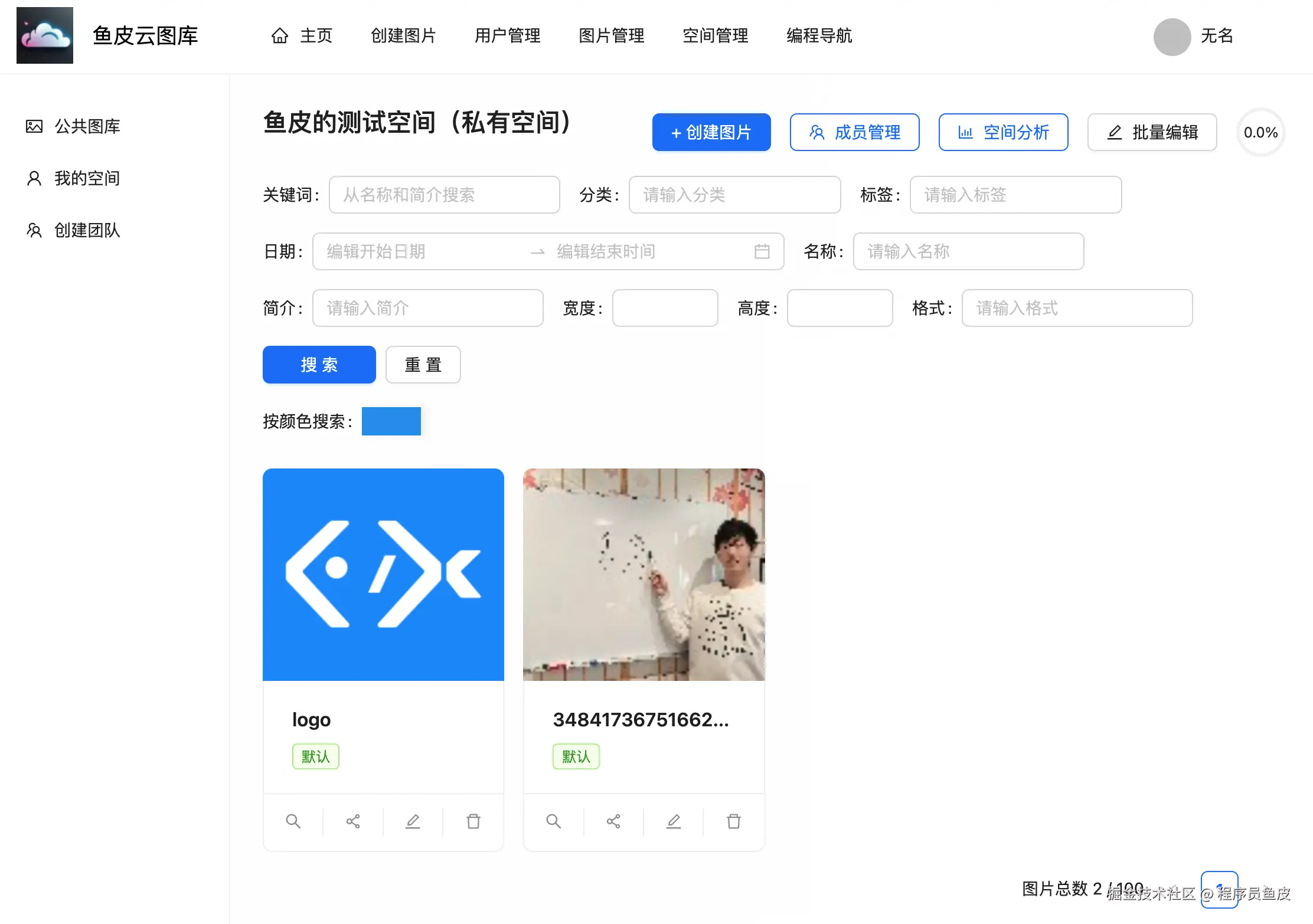 6)查看私有空间的图片,尝试各种搜索功能(比如按颜色搜索):