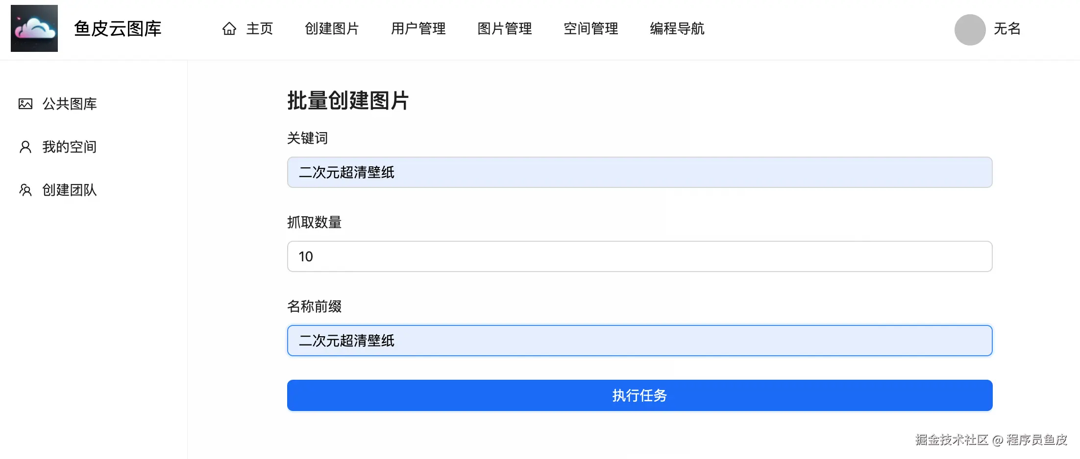2)进入图片管理 => 批量创建图片页面,抓取一批图片作为网站的初始数据