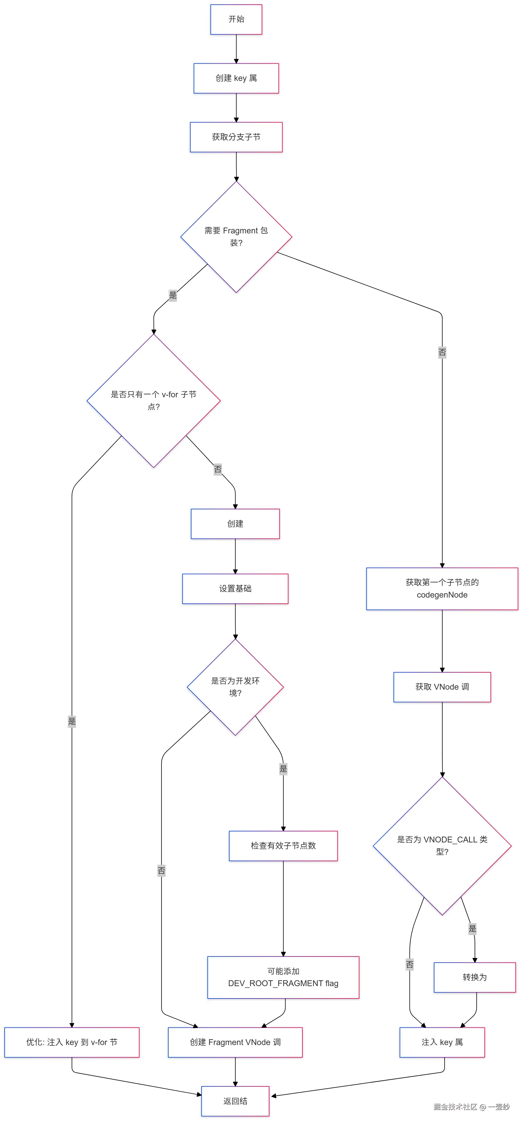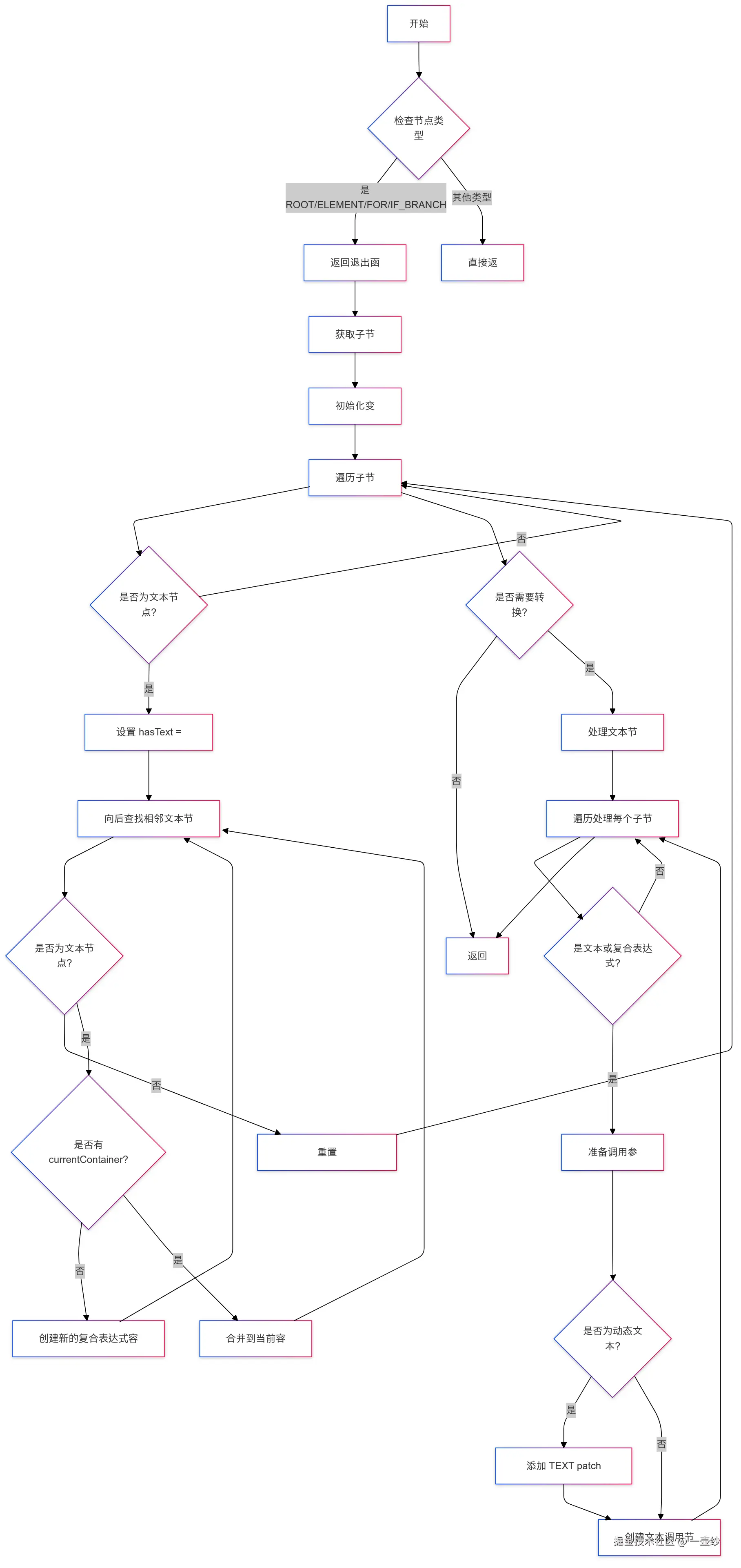 在创建 vnode 树的过程中,会通过 genNode 针对不同的节点执行不同的代码生成逻辑,这个过程还可能存在递归执行 genNode 的情况,完成整个 vnode 树的代码构建