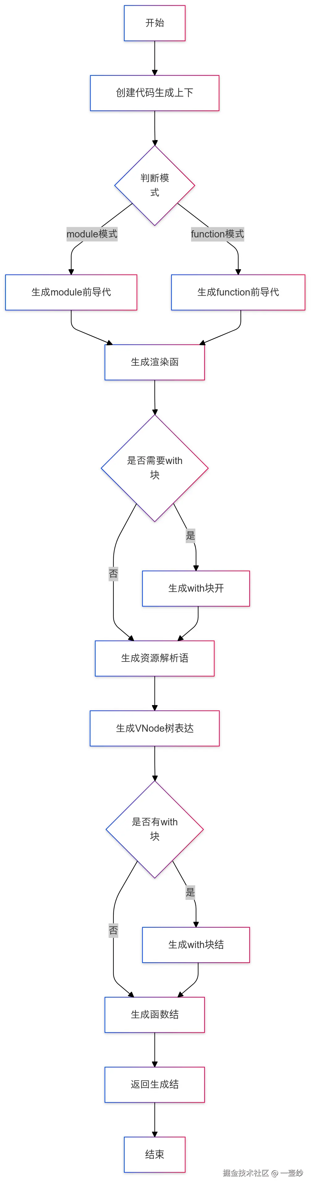 代码生成阶段也是一个自顶向下的过程,它主要依据前面转换的 AST 对象去生成响应的代码。