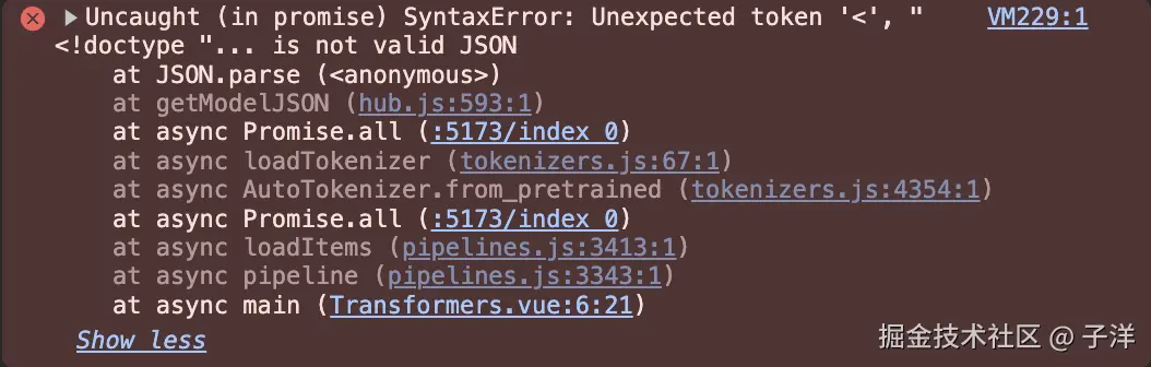 这个问题可能与 Transformers.js 库的某些 bug 有关。在 HTML 中运行该代码时不会报错,但在 Vue 中运行时可能会出现此错误。