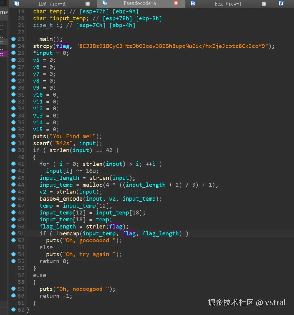 将输入先异或了16然后进行base64变表编码然后将12位和18位进行了交换再比较