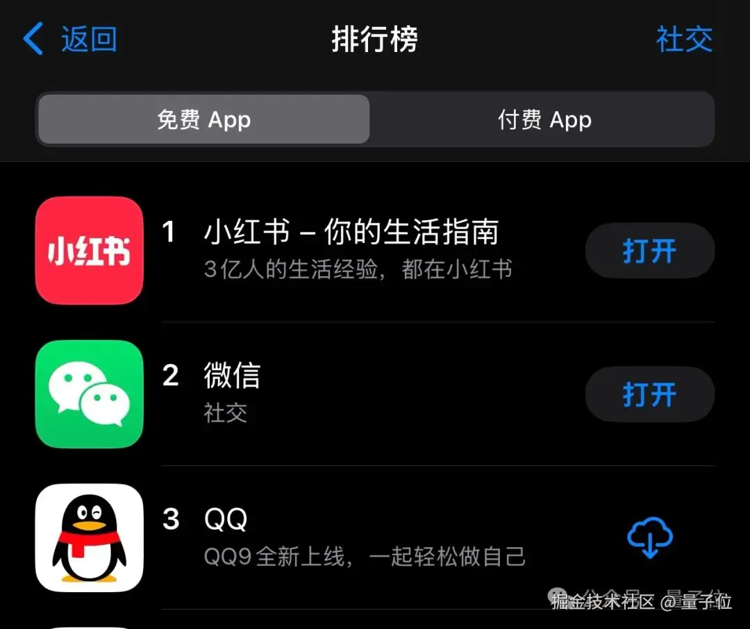 从 App Store 排行榜上看,小红书依旧稳居社交「免费榜」第一的位置。