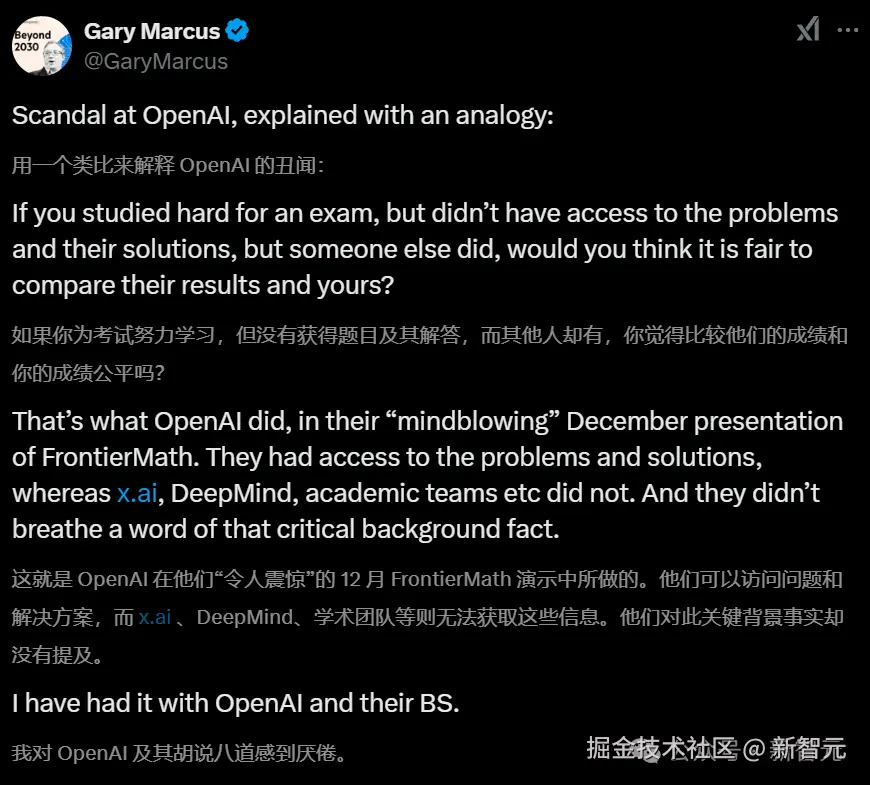 然而现在看来,**「AI 公司根本接触不到这个数据集」**这一点,实际上却是 Epoch AI 和 OpenAI 刻意制造出的假象。