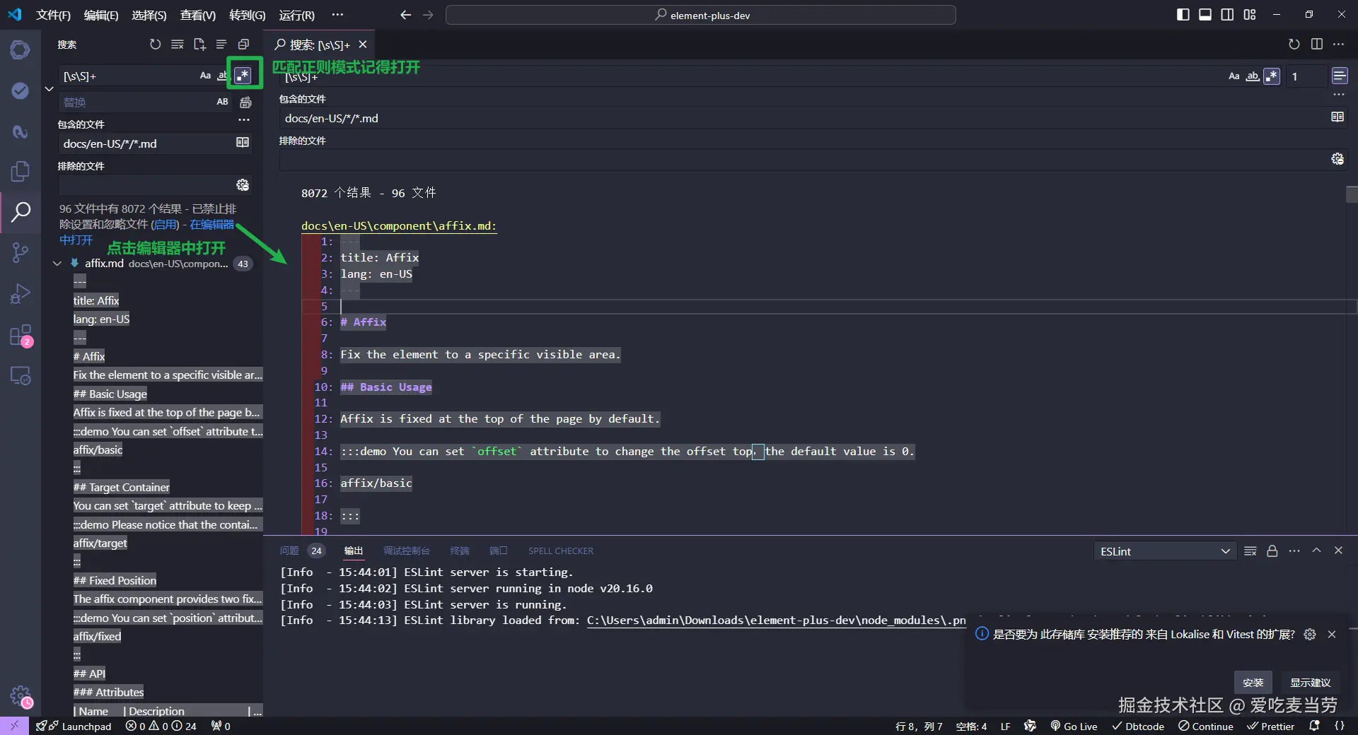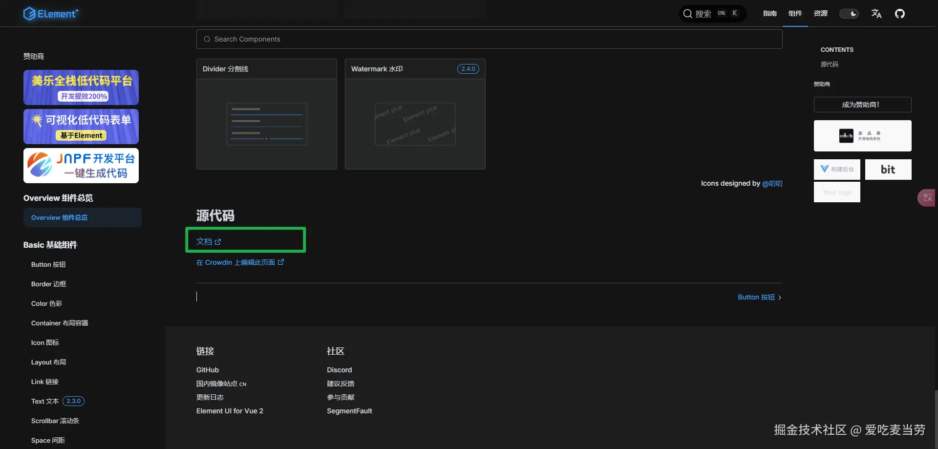 对于Element和Ant Design这类开源组件库,它们的文档也是挂载在各自的源码项目中