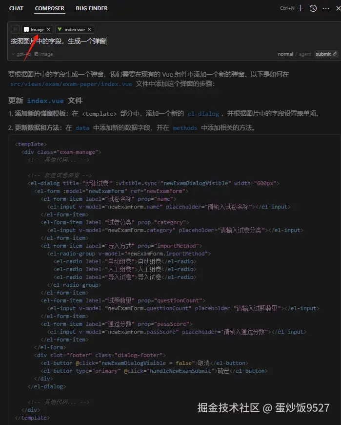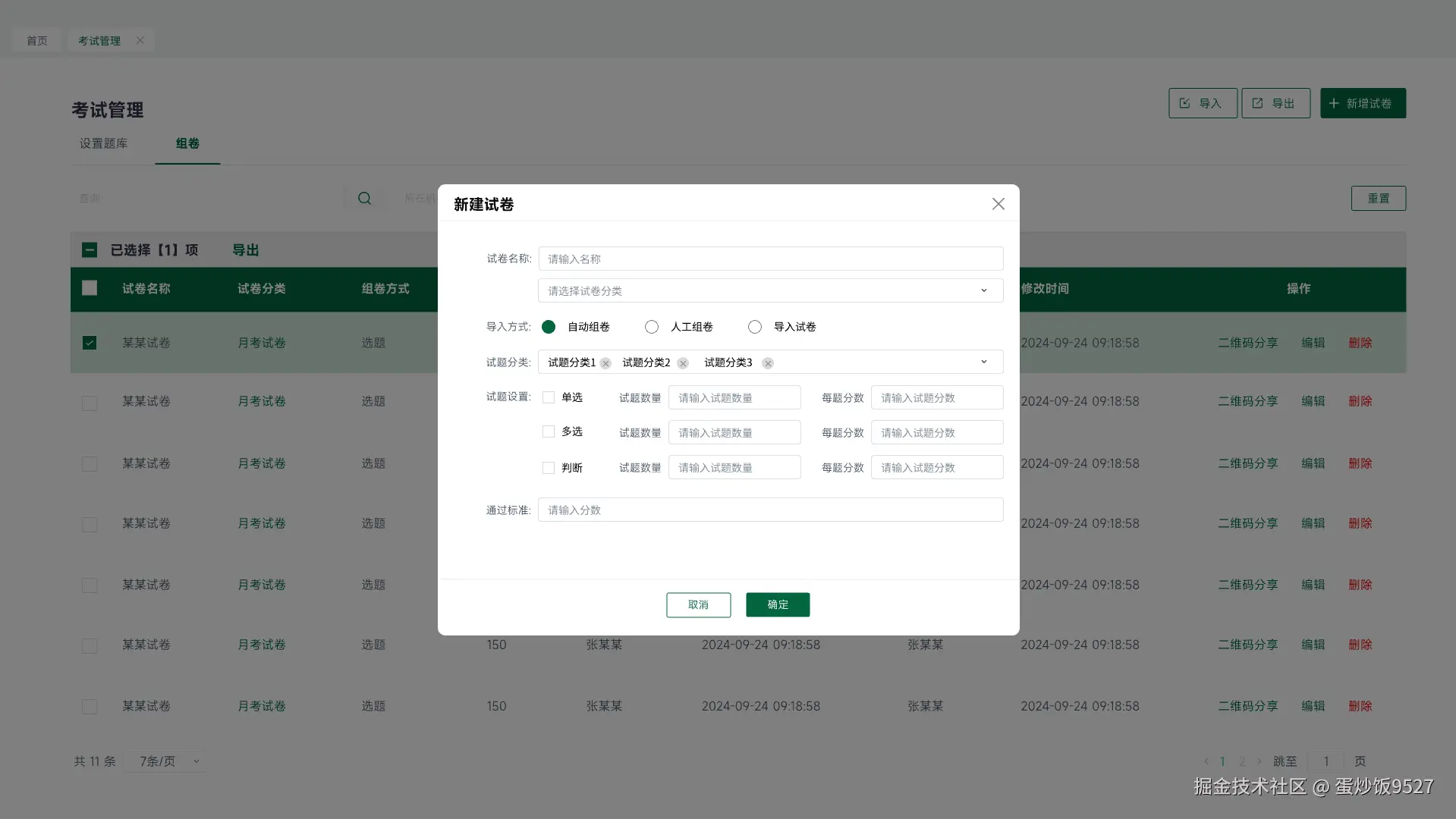 按照:我直接把新建试卷弹窗的截图喂给AI,让她生成弹窗