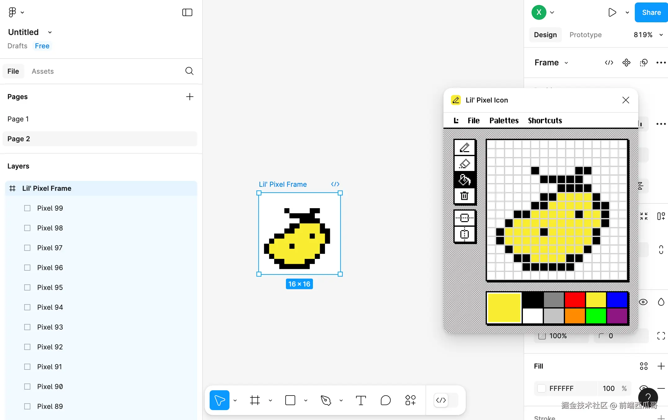 一款免费的绘制像素画的 figma 插件,只能画 16 x 16 的像素画。