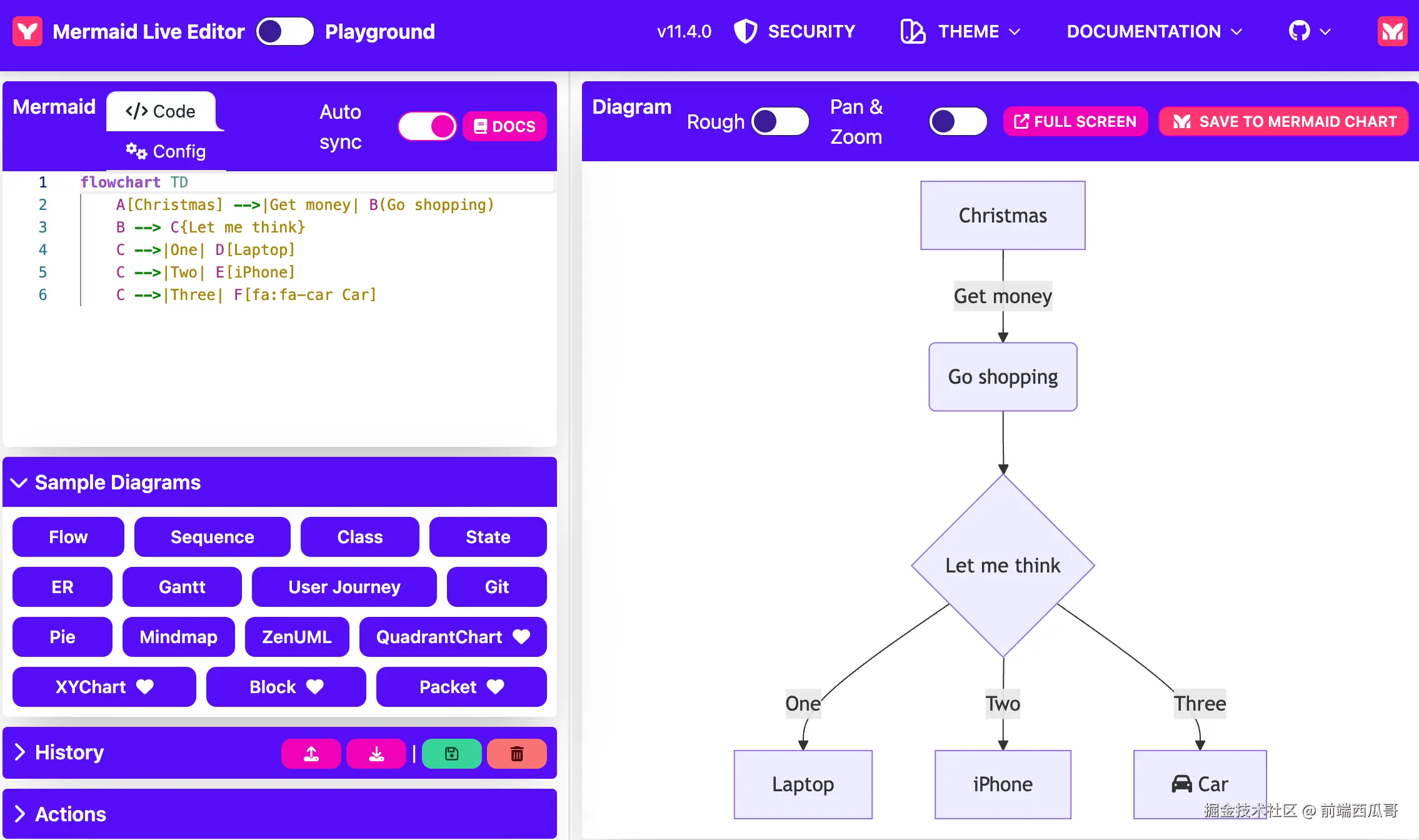通过提供类似 Markdown 文本的方式,渲染各种图表,比如流程图、时序图、思维导图。