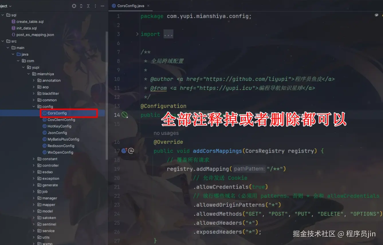 上述代码中,我们创建了一个名为CorsConfig的配置类,并实现了WebMvcConfigurer接口。在addCorsMappings方法中,我们使用CorsRegistry对象配置了CORS允许的规则。具体而言,我们允许所有的来源(allowedOrigins("*"))、所有的HTTP方法(allowedMethods("*"))、所有的请求头(allowedHeaders("*"))、允许携带身份凭证(allowCredentials(true))并设置了缓存时间(maxAge(3600))。