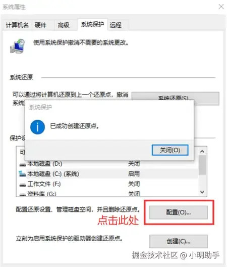 在电脑“设置”里搜索并点击“创建还原点”;在里面选择需要设置还原点的位置,然后点击下方“配置”的按钮,后面按照指示继续操作。