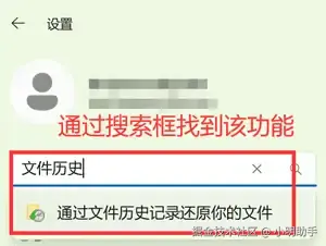 操作指导: 我们打开电脑“设置”页面,可以通过搜索框直接搜索“文件历史记录”并打开该功能。在新的页面上左侧选择“还原你的个人文件”,进入后定位误删文件位置,然后选择好要进行恢复的文件版本,将其恢复到目标位置。