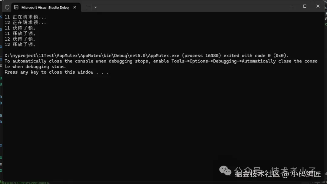 异常处理:在使用Mutex时,建议在try-finally块中释放互斥锁,以确保即使发生异常也能正确释放资源。