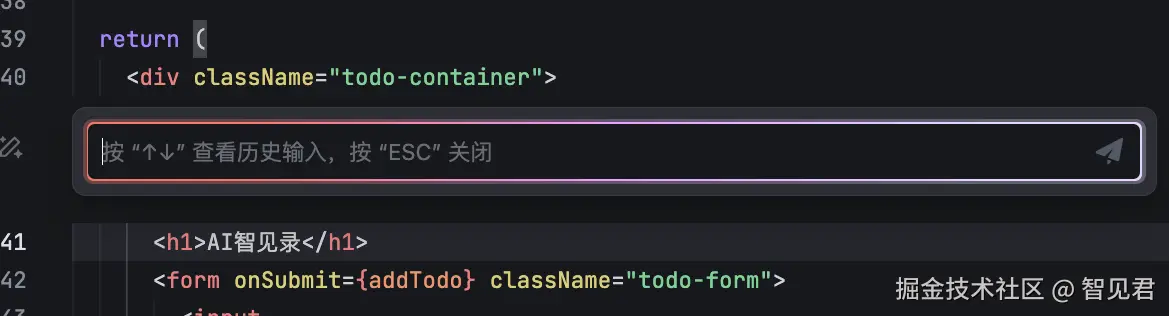 通过 Command + i 命令,唤醒内联聊天