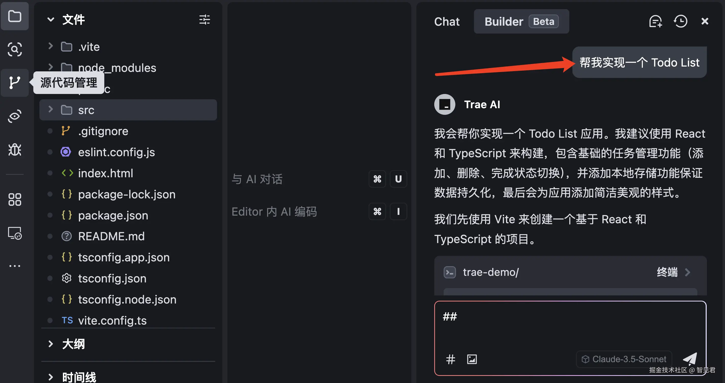 Builder 模式可以一键完成项目搭建,对文件的任何改动也都会自动保存。更像 Cursor 中的 Composer Agent 模式。还有 Windsurf Cascade Write 模式。(名字不一样,功能类似)