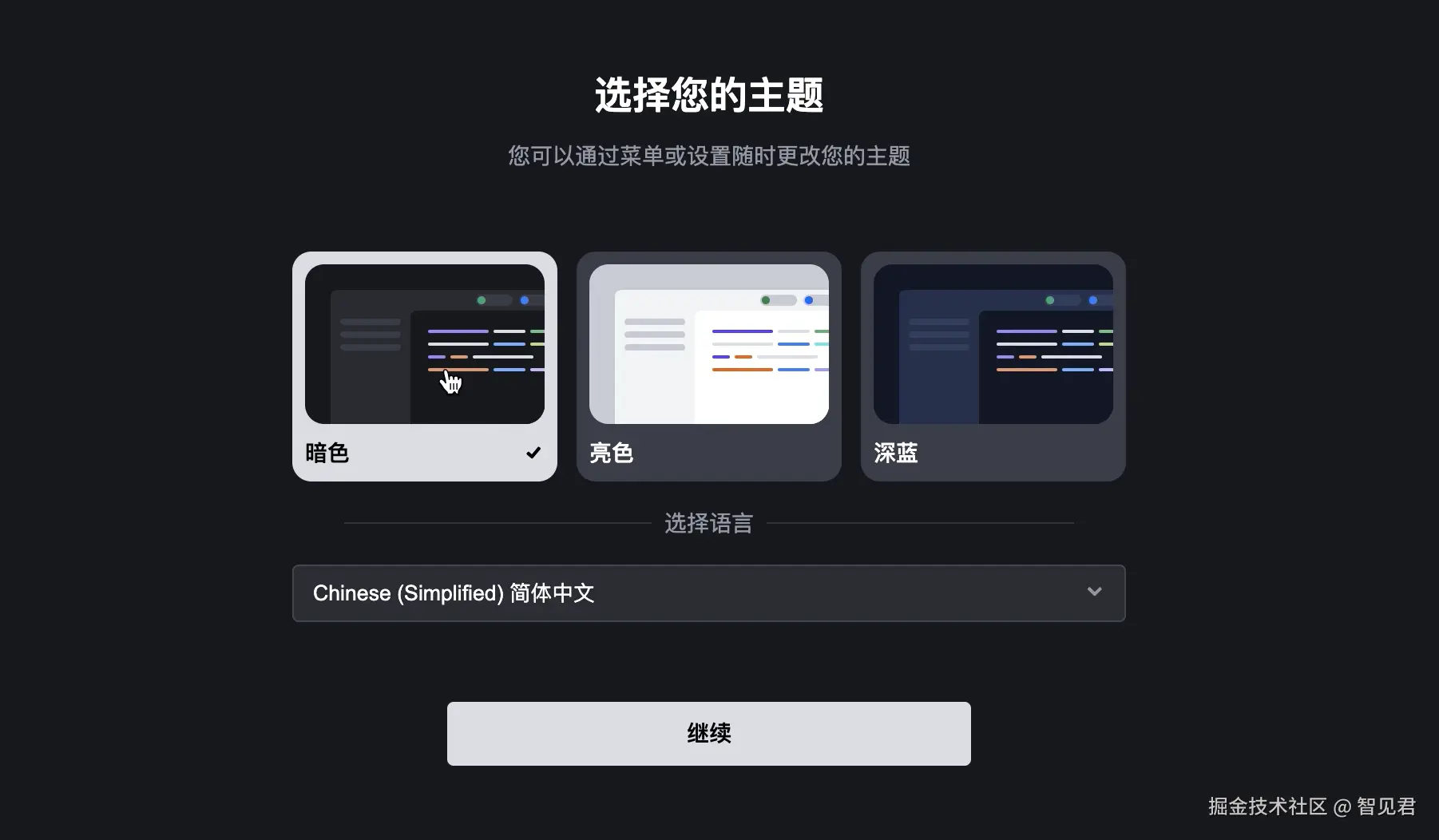 选择主题,语言选择中文,中文开发者非常友好
