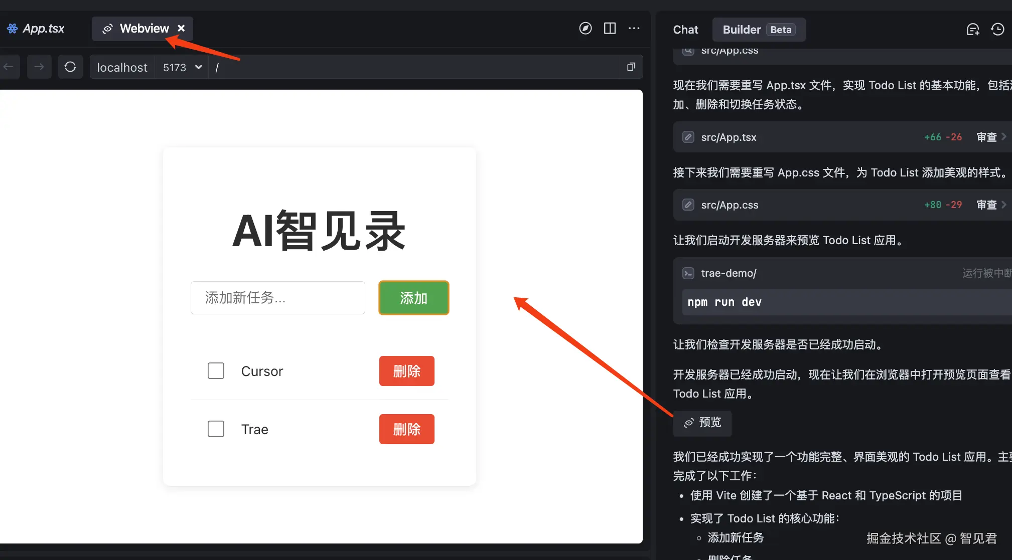 做了一个 Demo,让 Tare 帮我实现一个 Todo List,从项目搭建到完成,全程也是没写一行代码