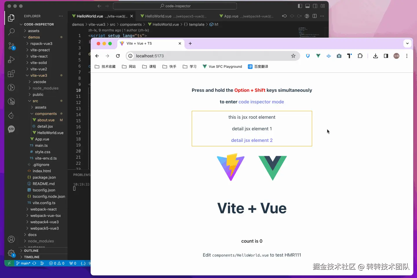 code-inspector-plugin 是一款开源的基于 webpack/vite/rspack/nextjs/nuxt/umijs plugin 的提升开发效率的工具,点击页面上的 DOM,它能够自动打开你的 IDE 并将光标定位到 DOM 对应的源代码位置。