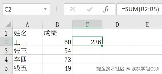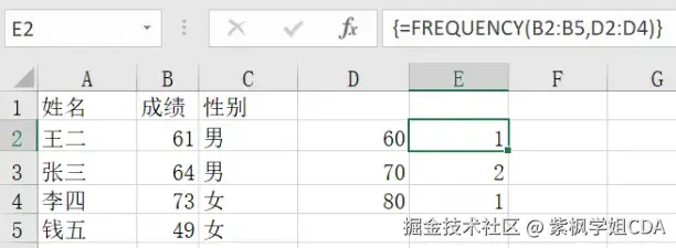 注意:其函数需要选中四格,输入完函数,按CTRL+Shift+Enter