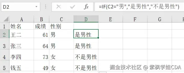 =IF(条件判断, 结果为真返回值, 结果为假返回值)