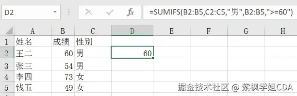 =SUMIFS(实际求和区域,第一个条件区域,第一个对应的求和条件,第二个条件区域,第二个对应的求和条件,第N个条件区域,第N个对应的求和条件)