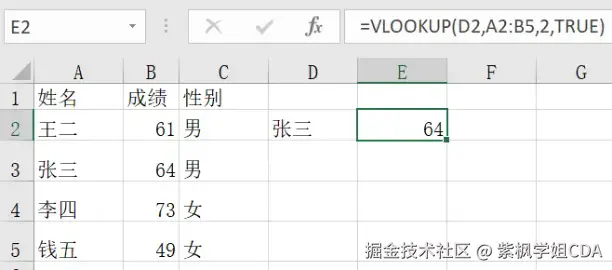 =VLOOKUP(查找目标,查找范围,返回值的列数,精确OR模糊查找)