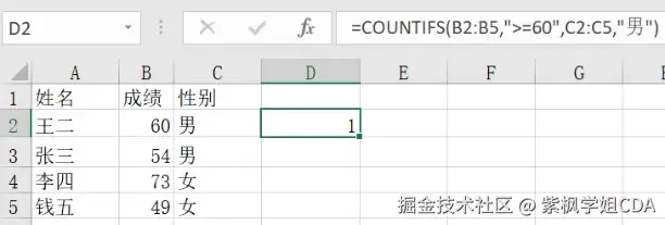 =COUNTIFS(条件匹配查询区域1,条件1,条件匹配查询区域2,条件2,以此类推......)