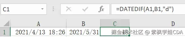 =DATEDIF(起始日期,结束日期,所需信息的返回时间单位代码)