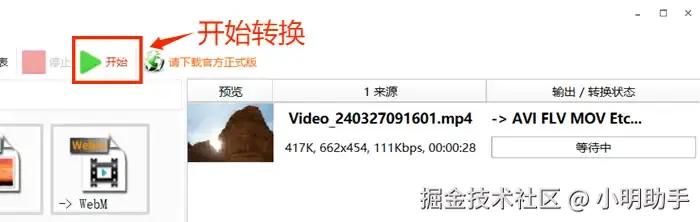 第三步:最后,点击【开始】按钮开始转换视频格式。