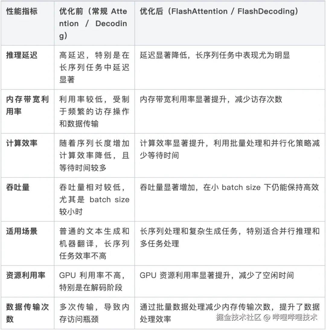 2.1. FlashAttention 和 FlashDecoding优化前后的性能对比