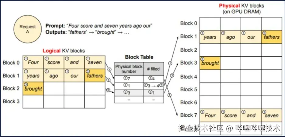 这种优化方法可以有效地管理Attention机制中的KV存储,减少内存占用,提高内存访问效率。如图(10)所示,可以看到PageAttention通过优化KV存储,将逻辑KV块映射到物理KV块,从而减少内存碎片和访问延迟,提升系统吞吐量。