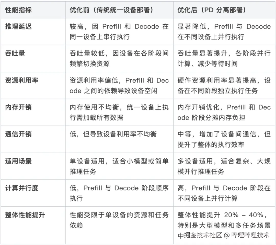 针对传统 PD 分离在 Prefill 和 Decode 阶段存在的计算需求不均衡、通信开销大等问题,本文在后续部分将讨论优化后的方案如何解决这些问题。