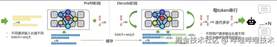 在推理过程中,Prefill和Decode两个阶段有着不同的计算需求和资源瓶颈。Prefill阶段主要是计算密集型任务,而Decode阶段更注重内存的访问效率。未来,设计专用的硬件模块来针对性地处理这两个阶段,能够有效提高推理效率。例如,为Prefill阶段设计更高计算密度的处理器,或者为Decode阶段优化内存带宽的硬件模块,这样可以显著提升整体推理速度。