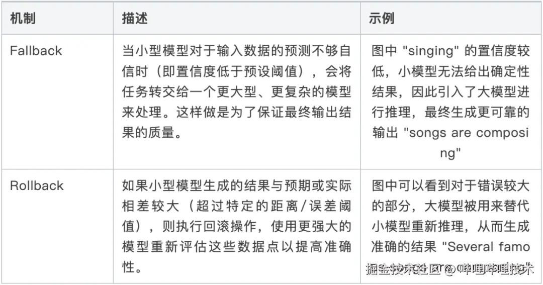 在自回归大模型推理中,通过使用一个简洁且反应迅速的小型模型来辅助解码,提升推理速度。例如,EAGLE、Medusa等方案通过自回归预测加速推理过程,大幅降低推理的计算复杂度。研究表明,通过学习模型的权重和连接结构,可以有效地提高神经网络的计算效率[2]。投机采样机制,通过小模型和大模型的协同工作来优化推理过程和精度, 投机采样机制包Fallback(回退)和Rollback(回滚)两个策略 ,下表详细解释了投机采样机制的内容。