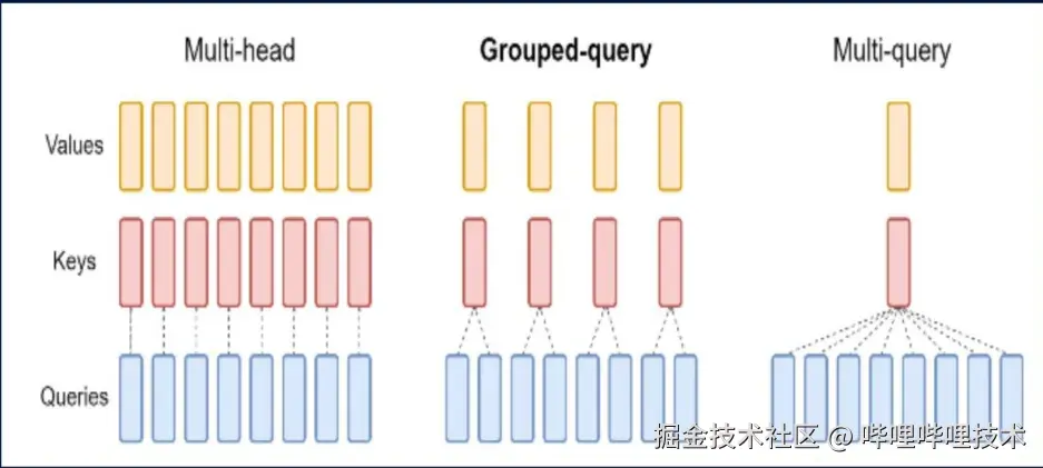 在 MindelIE-LLM 中,通过使用 Grouped-Query Attention (GQA) 和 Multi-Query Attention (MQA),有效提升了在多任务并行和长序列推理任务中的性能表现。GQA 可以通过分组共享 Key 和 Value 来减少内存占用和提升计算效率,而 MQA 则能通过对所有 Query 使用相同的 Key 和 Value,进一步减少计算和内存开销