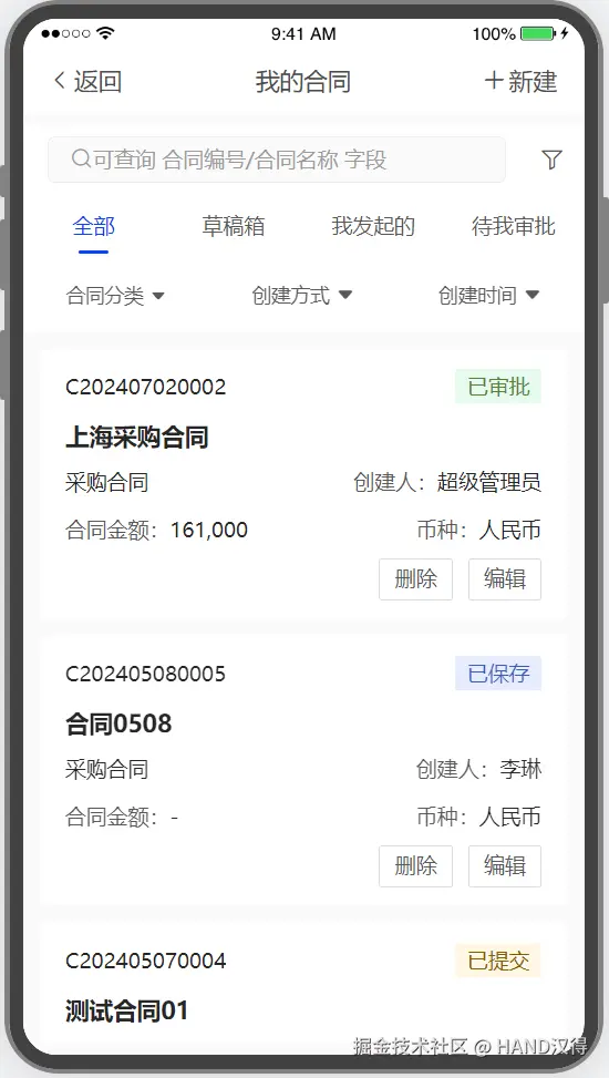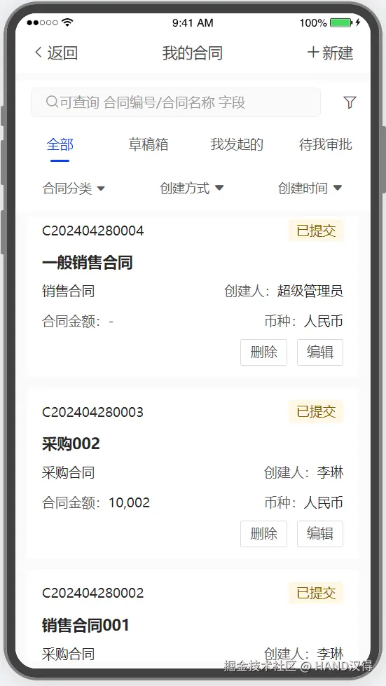 不同部门的用户在合同系统中拥有不同的权限。例如销售部门可以查看和编辑与销售合同相关的内容,而采购部门则可以管理采购类型的合同。