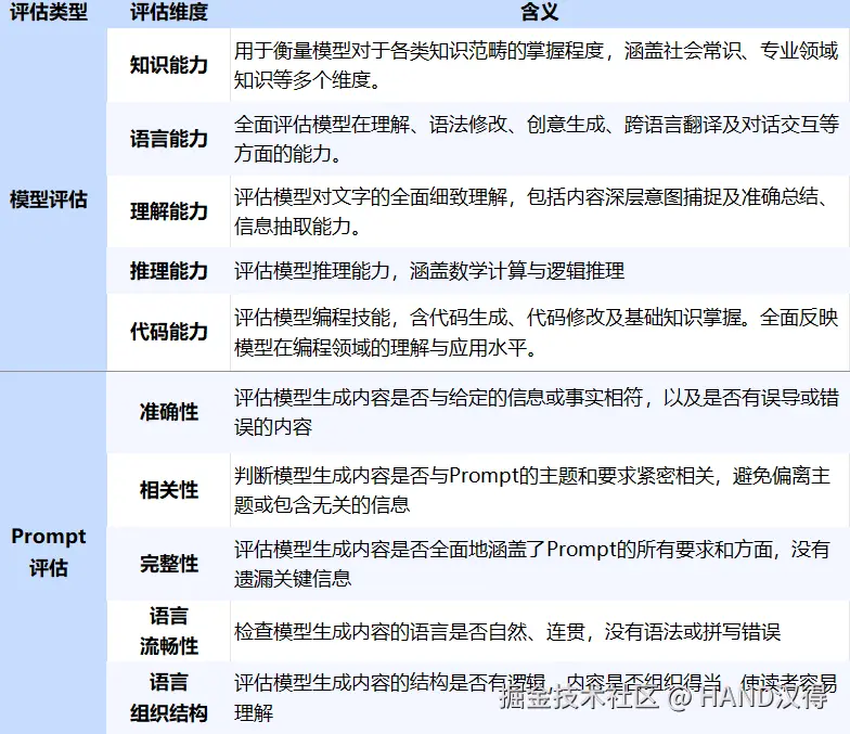 Prompt评估主要关注模型在特定提示(Prompt)下的响应质量,测试模型在不同Prompt中理解和生成文本方面的能力。Prompt评估有助于: