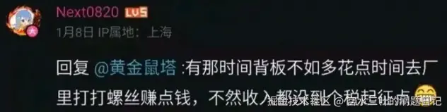 事情的起因,是 B 站员工袁某某(Next0820)在某个游戏视频底下回复了一条 22 年的评论,先是通过收入对 B 站用户(黄金鼠塔)进行了嘲讽: