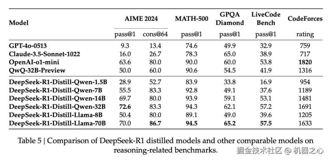 性能方面,蒸馏后的 R1 32B 和 70B 版本远远超过了 GPT-4o、Claude 3.5 Sonnet 和 QwQ-32B,并逼近 o1-mini。