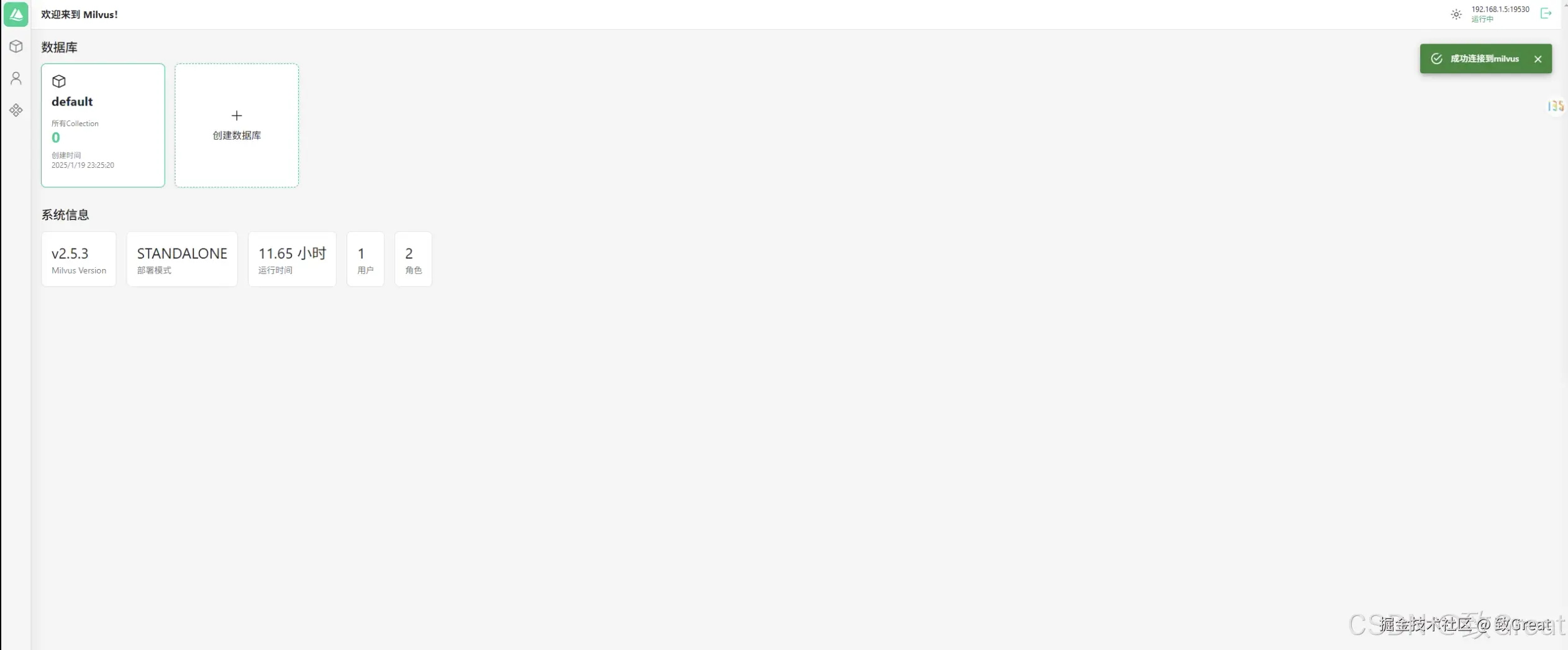 | MILVUS_URL | 192.168.0.1:19530 | 否 | 可选,Milvus 服务器 URL |